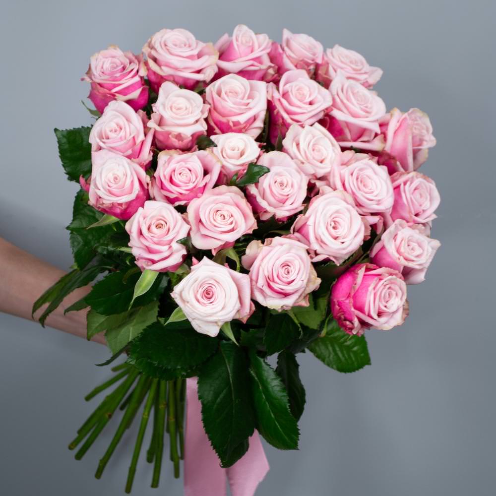 Букет из 25 розовых роз - букет, который отличается уникальной эстетикой, созданной за счет стиля и цветовой гаммы